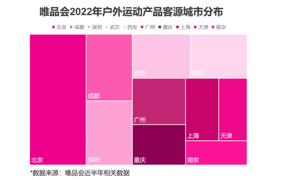 插圖:唯品會2022年戶外運(yùn)動產(chǎn)品客源城市分布