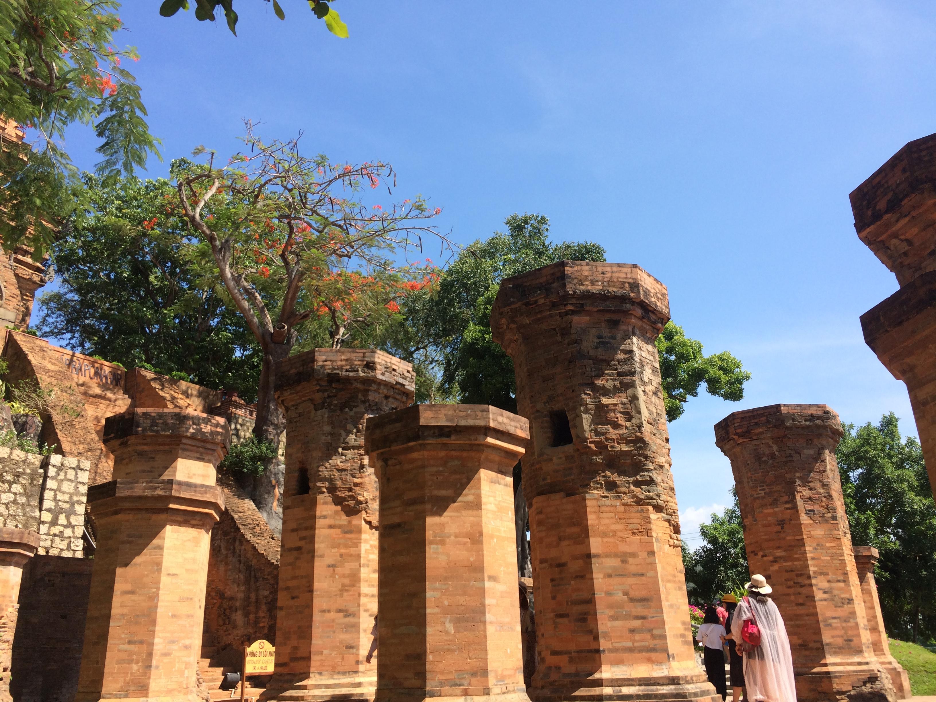 第二天行程,由于飛機(jī)晚點(diǎn),我們凌晨三點(diǎn)才到酒店休息。酒店位于海邊附近,裝潢和服務(wù)還是可以的。我們?cè)缟显诰频瓿赃^(guò)早飯,上午 9 點(diǎn)乘大巴車去了當(dāng)?shù)氐淖诮痰兀赫计潘颂幑┓畹氖钦计派裨捴械奶煲琅衿拍羌?。占?champa),是在今天越南中南部存在過(guò)的古老,梵文名占婆補(bǔ)羅,意為占族所建之城。參觀時(shí)間大概 90分鐘,可以進(jìn)去拍照,但是著裝一定要莊重。