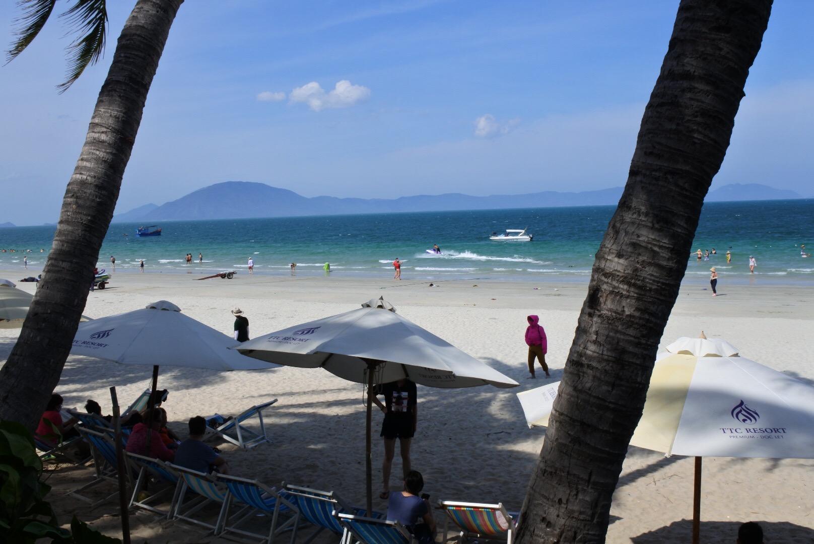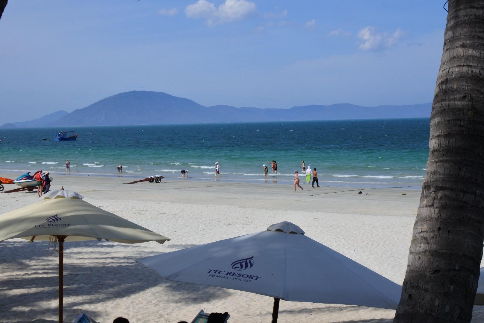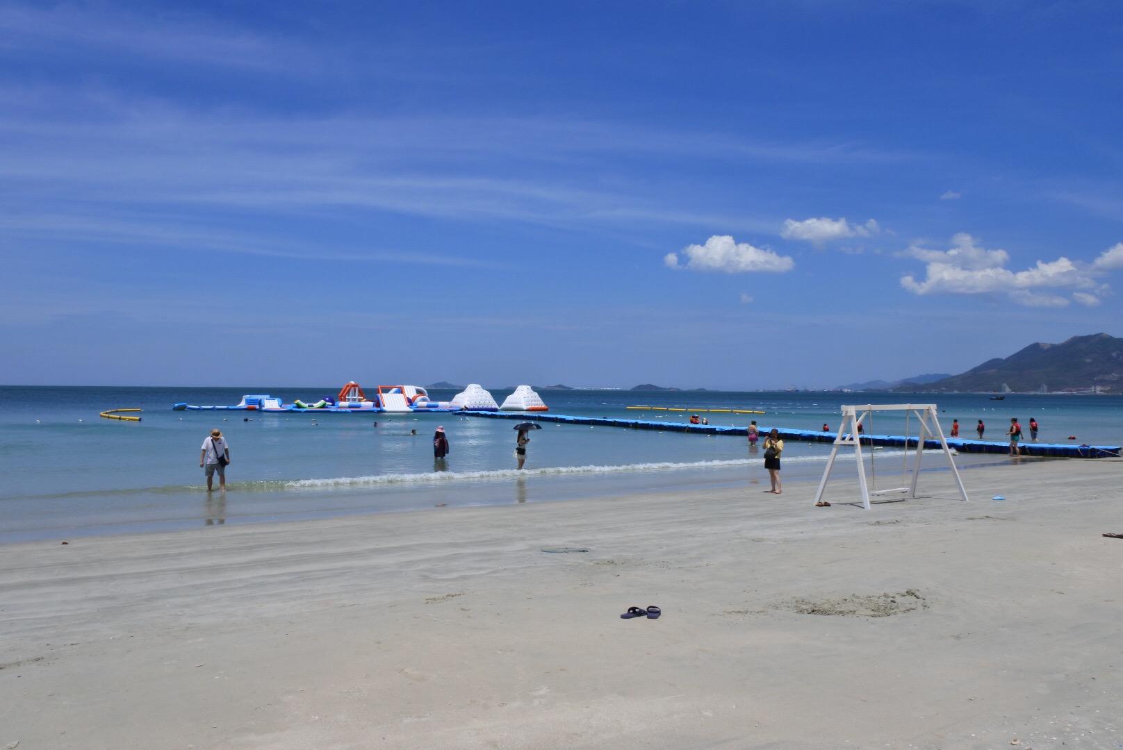 然后乘大巴 90分鐘左右到達(dá)越南南部的天堂灣海灘,芽莊聞名于世的所有優(yōu)點(diǎn):依山傍水,椰林郁,一望無(wú)際的海岸線,幼滑的白沙;沙灘上悠閑享受日光浴品嘗鮮榨果汁。性感的比基尼的異國(guó)朋友,曬得古銅色的皮膚,清澈的海水;天堂灣風(fēng)景很美,海灘比較平整,海浪小很適合游泳玩水。?