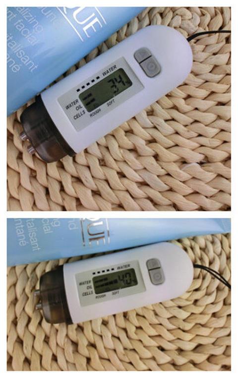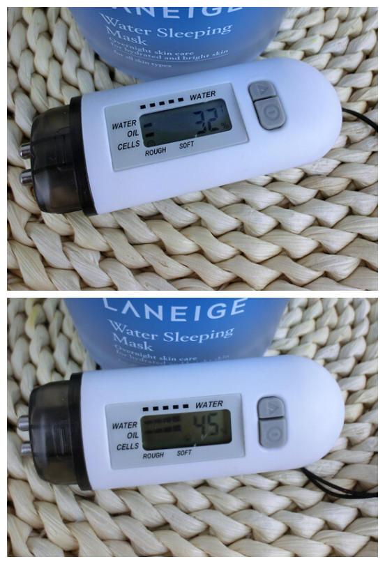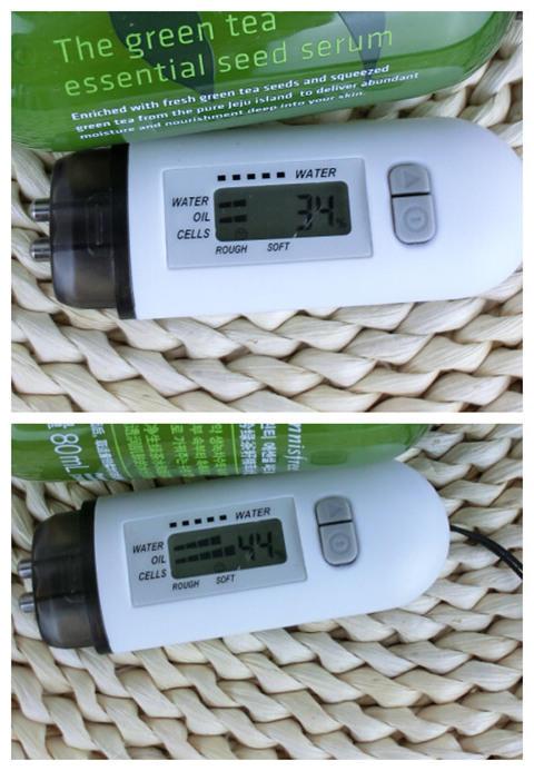 水分值對比:32%上升到50%補水效果真的很棒,比一般的爽膚水、純露、之類的要高很多