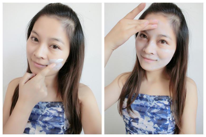 涂了之后她在三分鐘左右會干掉,這時候用溫水沾濕涂有面膜的部位輕輕按摩
