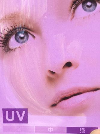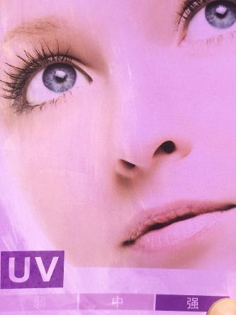 (將等量產(chǎn)品涂抹在紫外線測(cè)試卡左邊部分,觀察防曬效果。)