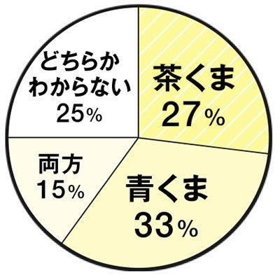 在日本美容雜志《美的》的采訪中,可以看出青色黑眼圈與茶色黑眼圈比例相對較大,當然也存在著“不知道自己是哪種”的情況。