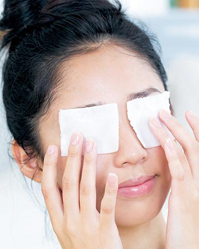 tip3:卸妝不到位也可能會導致色素累積,所以在進行眼部卸妝時要選擇對肌膚無負擔的眼唇卸妝液。使用時用卸妝液浸濕化妝棉敷在眼上20秒即可,輕輕擦拭,不要搓揉。