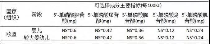 2.歐盟標(biāo)準(zhǔn)中規(guī)定了5類核苷酸的添加標(biāo)準(zhǔn)上限,但未對膽堿、肌醇、肉堿等做出明確說明。