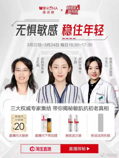 然后,薇諾娜也抓住了直播帶貨的風(fēng)口,除了與一些知名主播進(jìn)行合作營銷外,也緊跟著一些大活動走。