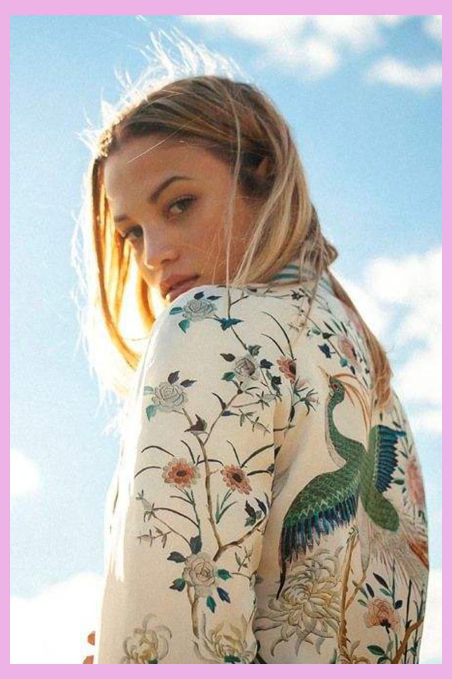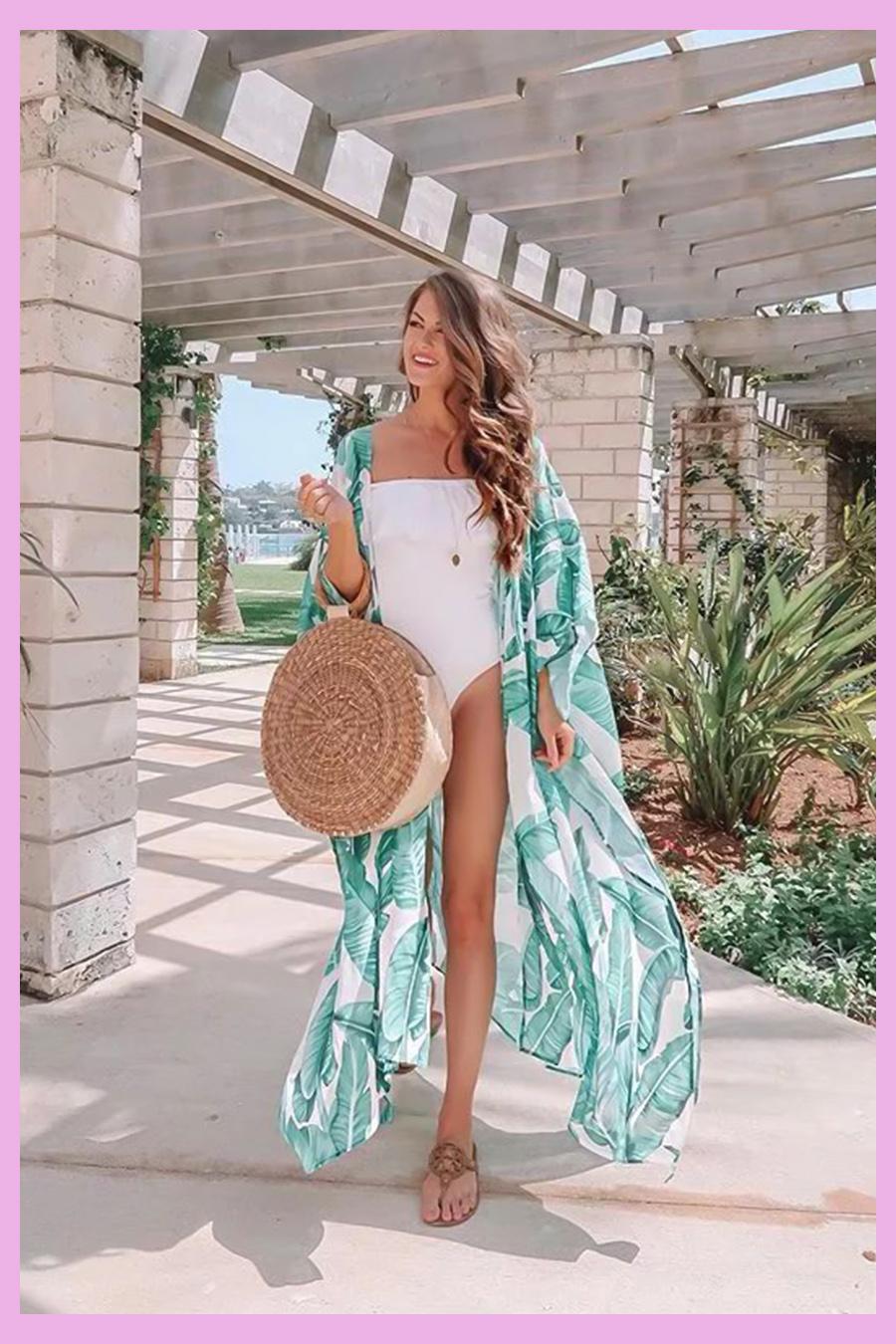 印花防曬衣圖案豐富、款式休閑,這幾年也一直受到時尚達人們的追捧,這款青綠色的防曬開衫在視覺上面清爽感特別強,白色搭配青綠的印花面料清新靚麗,內里搭配白色連體泳褲也是海邊一級棒的選擇!▼