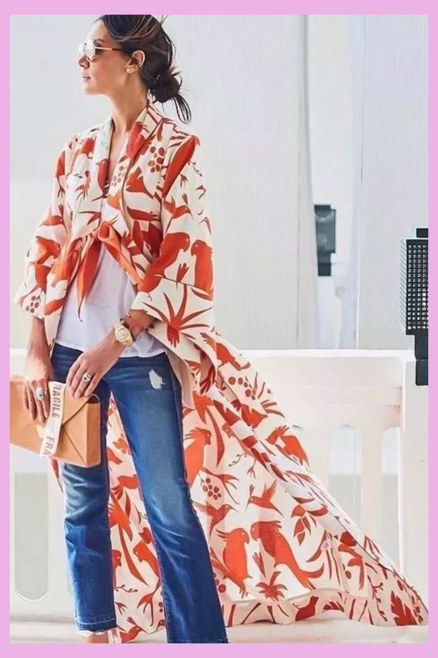 這種和風款式的防曬開衫顏色鮮艷,圖案靚麗豐富,活潑而不失優(yōu)雅大方,盛夏這樣穿,走到哪都是一道靚麗的風景線!▼