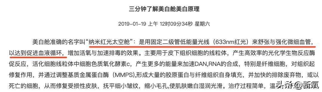 不管是哪個、哪個品牌的官網(wǎng)宣傳都沒有提到過這個機器具有美白功能,只是說它能促進膠原蛋白再生。所以“美白艙”這個名字,都是國內(nèi)商家營銷出來的一個概念,哪怕叫它“膠原蛋白艙”其實都更符合實際。
