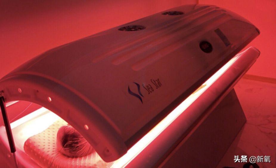 美白艙嘛,顧名思義就是一個美白機器,從外觀來看,就是下圖這個看起來像睡眠艙一樣的東西,區(qū)別就是它并不是全封閉的那種,內(nèi)側(cè)會發(fā)出紅彤彤的光。