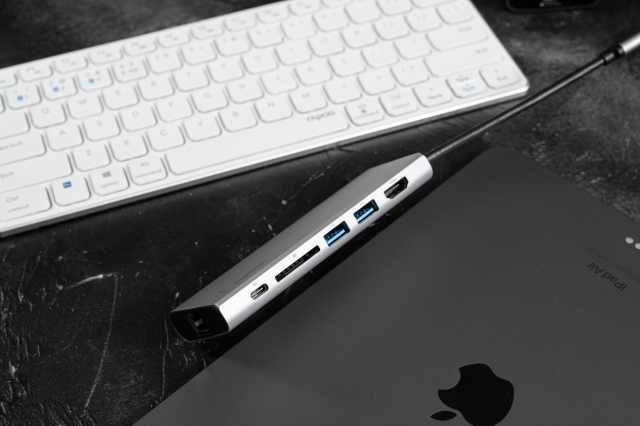第二個是AVC009(七合一),相比AVC007,其多了一個支持PD3.0充電協(xié)議的USB-C接口以及一個3.5mm耳機接口。其中USB-C的帶寬為5Gbps,支持100W的PD供電。兩個USB-A為USB3.2協(xié)議,傳輸速度同樣為5Gbps,HDMI接口和AVC007一樣同樣為HDMI1.4支持4K@30視頻信號。