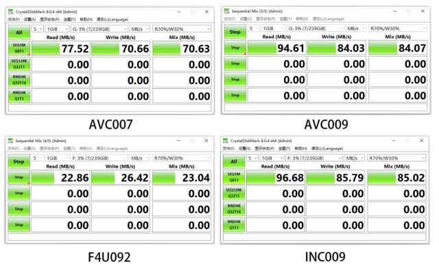 實測INC009和AVC009兩款擴展塢的SD接口能夠達到94MB/S的讀寫速度,基本上符合SD3.0接口的傳輸速度。AVC007的SD卡接口傳輸速度則為77MB/S,只有單SD卡槽的F4U092傳輸速度則僅有30MB/S??傮w來說,這四款擴展塢的SD接口都能滿足市面上絕大部分SD存儲卡的讀寫需求,不用太過擔心跑不滿SD卡。
