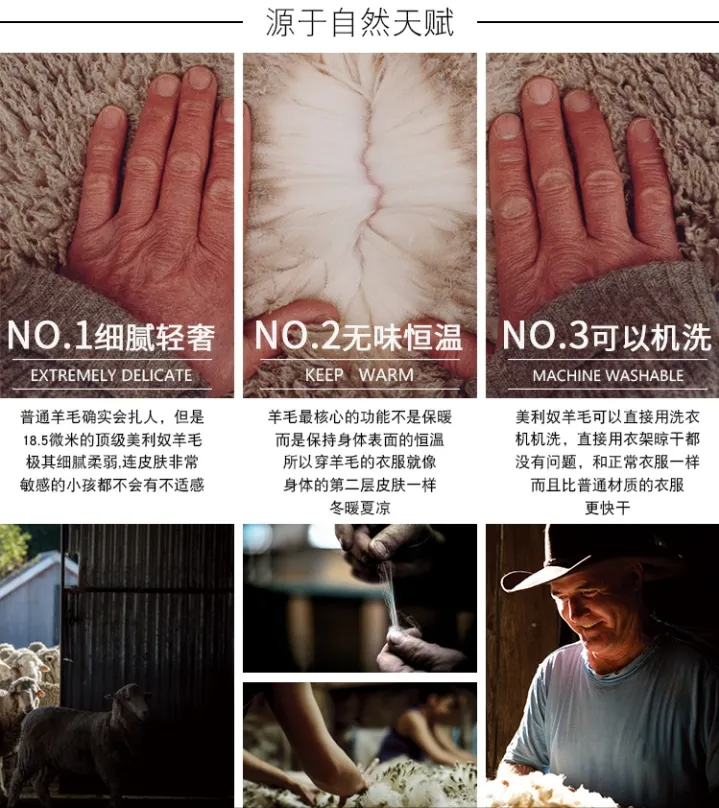 絲光美利奴羊毛具有順滑的手感,鮮明的垂墜感,絲綢般的光澤,關(guān)鍵是洗護(hù)方便不用操心。