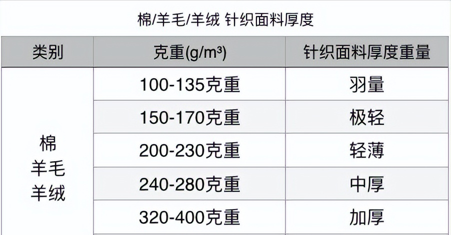 克重,針織面料的指標(biāo),即每平方米面料的重量,單位g/m3,代表針織面料的稀疏緊密,是針織面料檔次的重要指標(biāo)。