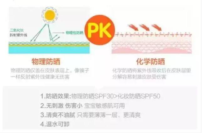 化學(xué)防曬就是皮膚先吸收一部分具有防曬作用的物質(zhì),之后再進(jìn)行防曬,而物理防曬則是在皮膚表面形成一個(gè)保護(hù)屏障,去反射紫外線,這樣就不存在有化學(xué)物質(zhì)被皮膚吸收,從而導(dǎo)致刺激激皮膚過(guò)敏的情況了,對(duì)于孩子來(lái)說(shuō)更加。