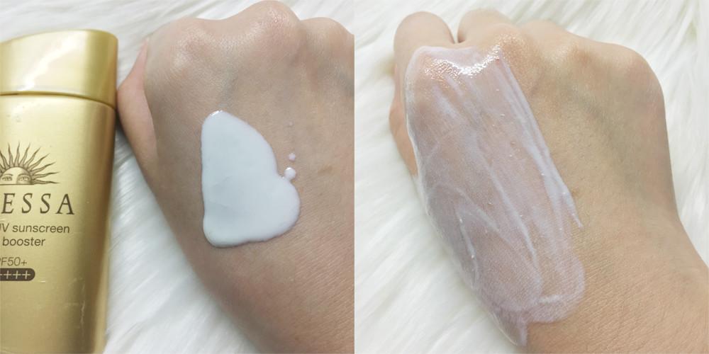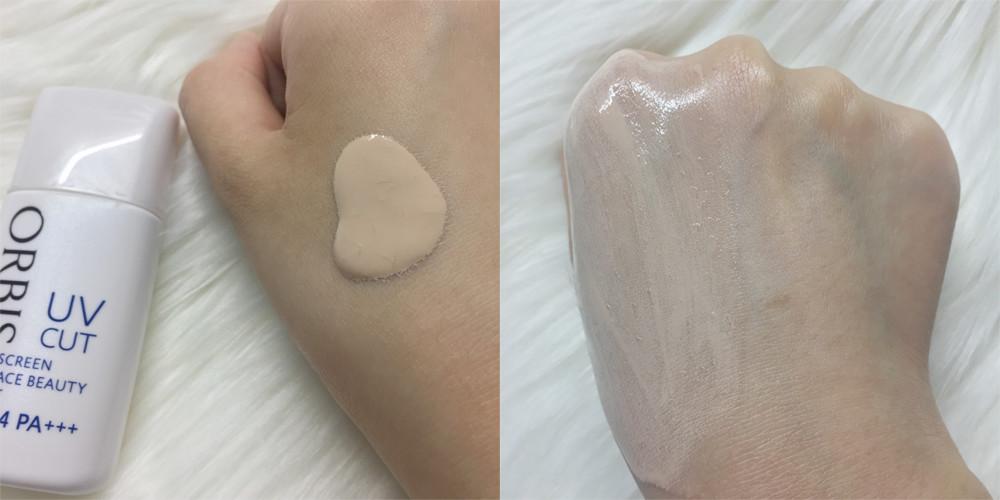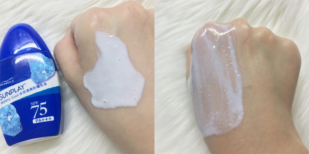 使用感:透明色的水狀,不用手指推,就能看到有多水潤了吧,超清爽!沒有潤色效果,但防曬能力超強。