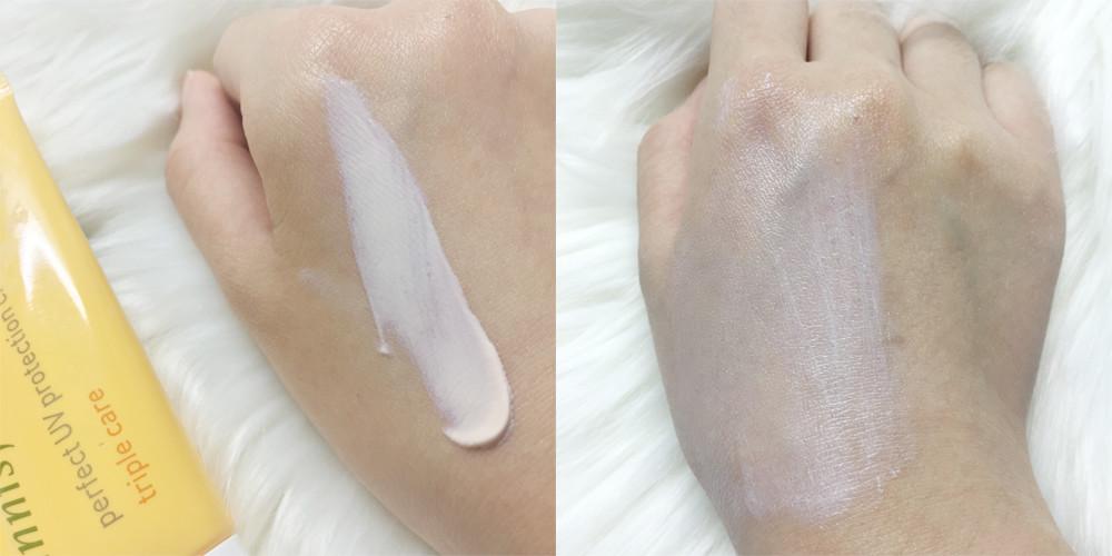 使用感:相比其他防曬產(chǎn)品,這款的味道有淡淡果香味。質(zhì)地是淡黃色的乳霜妝,滋潤度較高,是干皮的福音。