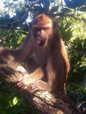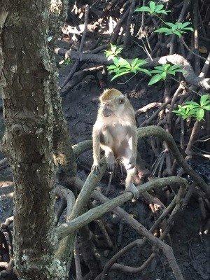 上船前李導(dǎo)帶著我們先去紅樹(shù)林碼頭吃點(diǎn)心,一種油炸的小吃,還有沙巴茶。這里的紅樹(shù)林碼頭是一家當(dāng)?shù)厝碎_(kāi)的餐廳,大家若是在這里請(qǐng)注意不要噴防蚊水,因?yàn)楫?dāng)?shù)厝撕懿幌矚g這個(gè)味道,可以上船后在噴,吃完點(diǎn)心上船后李導(dǎo)帶著我們?nèi)ふ议L(zhǎng)尾猴,用李導(dǎo)話(huà)說(shuō)看猴子這個(gè)需要緣分,猴子每次出現(xiàn)的時(shí)候大家都會(huì)特別激動(dòng)。