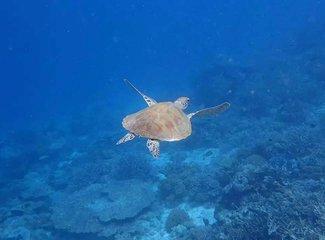 第三站曼達(dá)灣島,去浮淺啦muin用一個(gè)救生圈帶著我們?nèi)?,一邊游一邊給我們拍照,一邊幫我們找海龜,找了幾次沒(méi)有看到海龜和我們說(shuō)sorry,休息時(shí)候jason和muin說(shuō)他想自己游,想單獨(dú)帶著救生圈玩會(huì),muin說(shuō)可以然后去解開(kāi)他的救生衣,告訴他讓他open一點(diǎn)救生圈也不要帶了,Jason先生急忙說(shuō)我不會(huì)游泳,你會(huì)救我嗎?muin在一邊都傻了。因?yàn)槲覀內(nèi)恢挥形业谝淮胃\時(shí)候看到海龜兩位兩只都特別想看海龜,muin又開(kāi)船到另一個(gè)地方幫我們找海龜,看到了海龜muin才開(kāi)心。