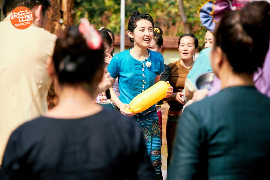 任嘉倫、譚松韻和許魏洲與蘑菇屋的家人們相聚時正值版納傣歷新年,蘑菇屋的“潑水小隊(duì)”快速集結(jié)蓄勢待發(fā),身穿傣族民族服裝的大家拿著灌滿“祝福”的武器——水槍,向“戰(zhàn)場”出發(fā)。這飽含“祝?!钡摹盎鞈?zhàn)”里,蘑菇屋眾人渾身都被澆了個徹底,許魏洲在人群中哀嚎“我就一條內(nèi)褲”,任嘉倫也說“這和洗澡有什么區(qū)別”。原本揮舞著水槍大喊“孩子們,你們的王來啦”的彭昱暢,也難抵村民們熱情的“攻勢”,在“他們這個槍威力很猛啊”的叫聲下連連“敗退”,暫時退出了“孩子王爭霸賽”。蘑菇屋的大家能在熱情的版納村民的“祝?!惫菹隆巴怀鲋貒眴??