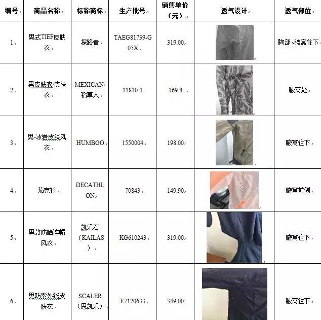 在檢測(cè)均達(dá)標(biāo)的樣品里,價(jià)格低的為從天貓商城/迪卡儂旗艦店購(gòu)買(mǎi)的名稱為“茄克衫”的樣品(商標(biāo):DECATHLON,生產(chǎn)批號(hào):70843,生產(chǎn)企業(yè):迪脈(上海)企業(yè)管理有限公司),售價(jià)為149.90元,UPF測(cè)試值為 124.89,透氣率測(cè)試值為19.6 mm/s,且此樣品不僅標(biāo)注了相關(guān)的防紫外線性能標(biāo)準(zhǔn)和警示說(shuō)明用語(yǔ),還在腋窩設(shè)計(jì)了孔洞面料,改良消費(fèi)者的穿著舒適性。