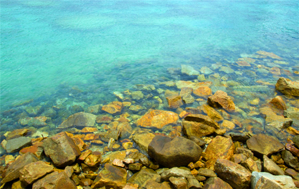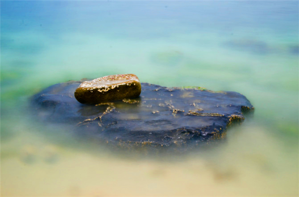 石頭在海浪常年的沖刷下變得更加的光滑、今天的海平和以往的相比較還是比較平靜的。