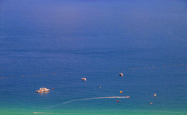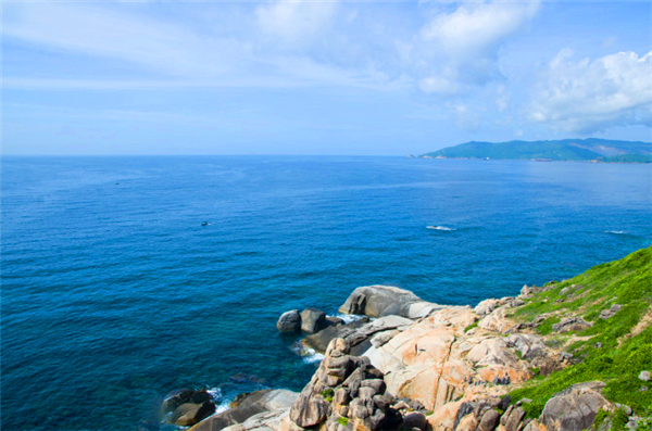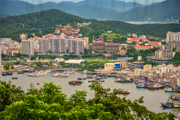 站在上頂上遠(yuǎn)遠(yuǎn)望去遠(yuǎn)處風(fēng)景一覽無遺、遠(yuǎn)處的建筑物似乎顯得更加的渺小了海平面上還有一艘艘漁船在海平面上緩緩的行駛著。