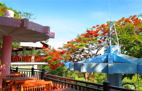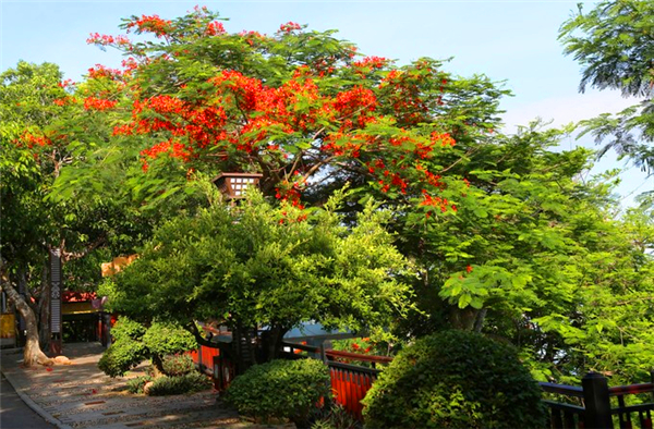 遠(yuǎn)處盛開的花朵好像就是木棉花的樣子、空氣中都迷漫著花的香味種植的植物種類也繁多同時(shí)站在上頂上吹著風(fēng)也能夠讓人身心舒暢。