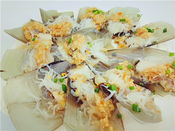 這是帶子可能蒜蓉是店家專門調(diào)制的味道特別的香再加上用來清蒸更加的顯現(xiàn)出蒜蓉的味道、上面還放著粉絲吃起來味道很不錯(cuò)肉質(zhì)很嫩很嫩。