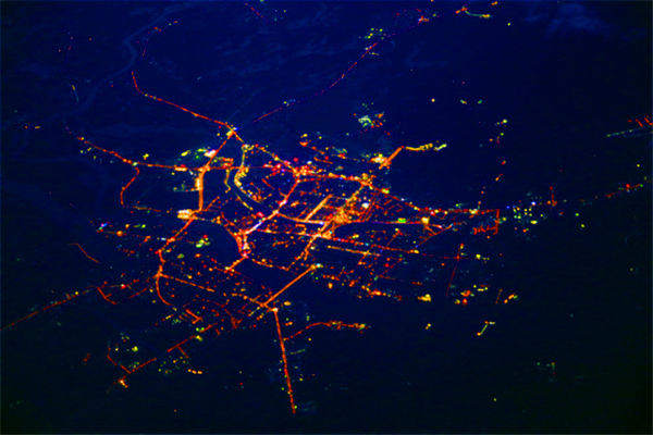 飛機(jī)在半空中飛行下面的一些事物也顯得更加的渺小了、燈火通明的夜晚為這座美麗的城市增添了許多色彩。