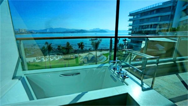 讓人感到意外的還是陽臺上還有個(gè)浴缸還有座椅累的時(shí)候可以躺在休息休息吹著海風(fēng)還能看到一望無際的大海、這應(yīng)該就是所謂的海景房吧!