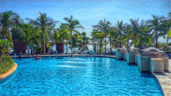 游泳池也沒什么人在游泳可能是太熱的緣故了吧!對于我這旱鴨子來說也是個(gè)不錯(cuò)的選擇還能游泳什么的。
