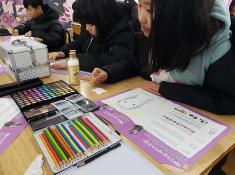 韓國兒童參加化妝體驗(yàn)課