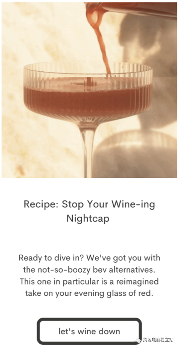植物補(bǔ)充劑品牌Apothékary很好地利用了這一趨勢(shì)。在這個(gè)例子中,它給那些想減少酒精消費(fèi)的顧客發(fā)了一整封郵件,提供了從無(wú)酒精飲料到其他飲料的各種選擇…