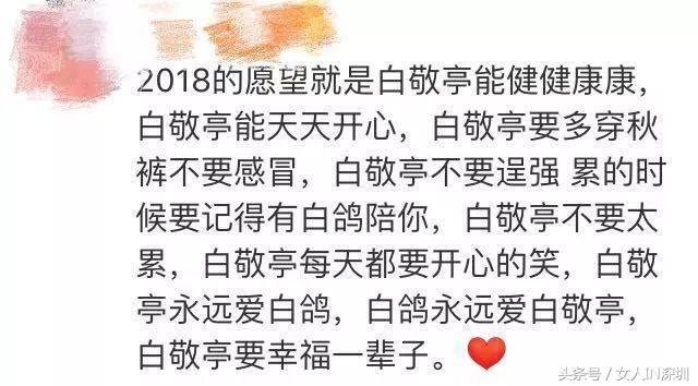 也有人送來了祝福,“2018的愿望就是白敬亭能健健康康,白敬亭能天天開心,白敬亭要多穿秋褲不要感冒,白敬亭不要逞強,累的時候記得有白鴿陪你,白敬亭不要太累,白敬亭要每天開心的笑,白敬亭永遠愛白鴿,白鴿永遠愛白敬亭,白敬亭要幸福一輩子。”