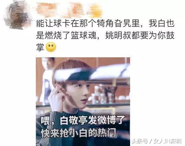 看了白敬亭的籃球的網(wǎng)友表示,“能讓籃球卡在那個犄角旮旯里,我白也是燃燒了籃球魂,姚明叔都要為你鼓掌?!?/p>