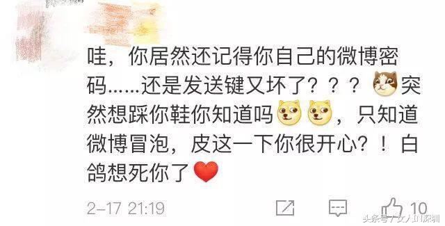 也有人嫌棄白敬亭不經(jīng)常發(fā)微博,“哇,你居然還記得你自己的微博密碼,還是發(fā)送鍵又壞了?突然想踩你鞋你知道嗎?只知道微博冒泡,皮這一下你很開心?白鴿想死你了!”