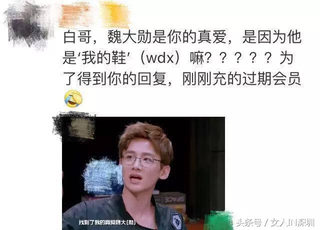 很多網(wǎng)友認為魏大勛才是白敬亭的真愛,“白哥,魏大勛是你的真愛,是因為他是‘我的鞋’(wdx)嘛?為了得到你的回復(fù),剛剛充的過期會員?!?/p>