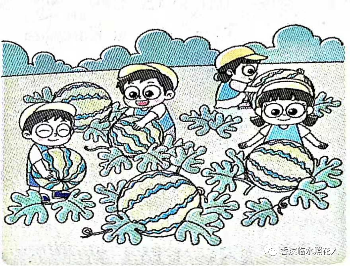 一路上我們一邊唱著歌,一邊欣賞著田園風(fēng)光,不一會兒,我們就到了瓜地里。我們看著一個個碧綠碧綠的西瓜,長在一片片葉子下,就好想馬上把它們都吃到肚子里。