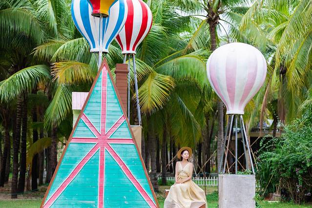 椰夢(mèng)長廊美的是日落,我們是下午來的,主要為了找這個(gè)拍攝基地,看到有小車,有熱氣球等道具,找地方停車就好。