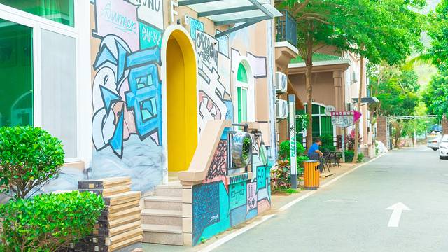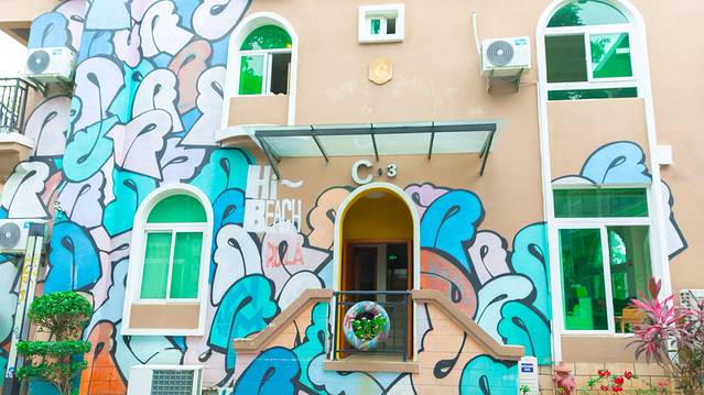 三亞 有大片涂鴉墻的地方不多,梧桐墅酒店這里酷女孩們肯定喜歡。梧桐墅酒店就在市區(qū)附近,導(dǎo)航直接就能找到,過來方便。