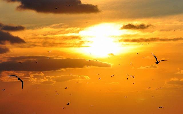 日落時(shí)間很短暫,剛赤腳跑到海邊,夕陽便將周圍的一切染成了金色,海面上波光粼粼,像是灑滿了碎金子,美好且夢(mèng)幻。