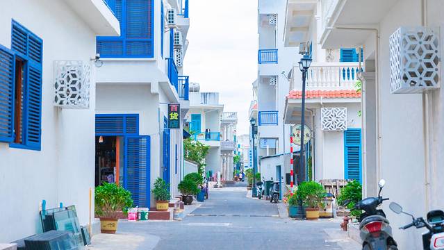 天涯鎮(zhèn)位于 三亞 市西部,擁有風(fēng)光旖旎的紅塘、三美兩大海灣,走進(jìn)這里的街巷,有種走在 圣托里尼的錯(cuò)覺,因此,這個(gè)藍(lán)白小鎮(zhèn)也被游客稱為: 三亞 版 圣托里尼 。