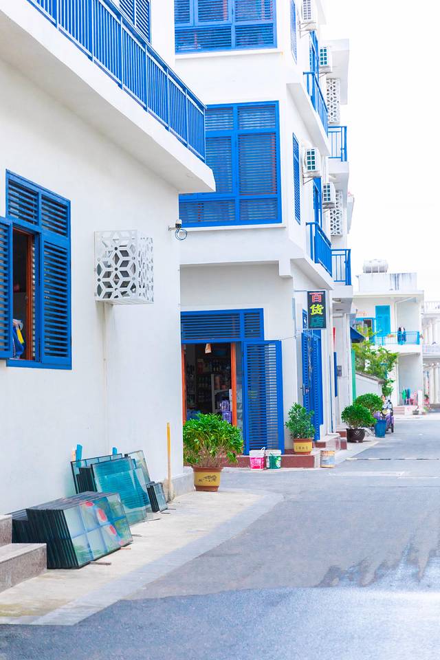整個(gè)小鎮(zhèn)都充滿著 地中海 風(fēng)情,大部分房子都是藍(lán)色和白色的搭配,真的的,隨便拍都能拍出小清新的照片。