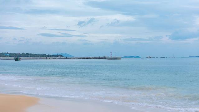 慢慢走著,就到了街道的盡頭,一眼便看到了大海。清澈淡藍(lán)的海水,沖刷著干凈柔軟的 白沙 ,海風(fēng)輕拂,滿滿的愜意。