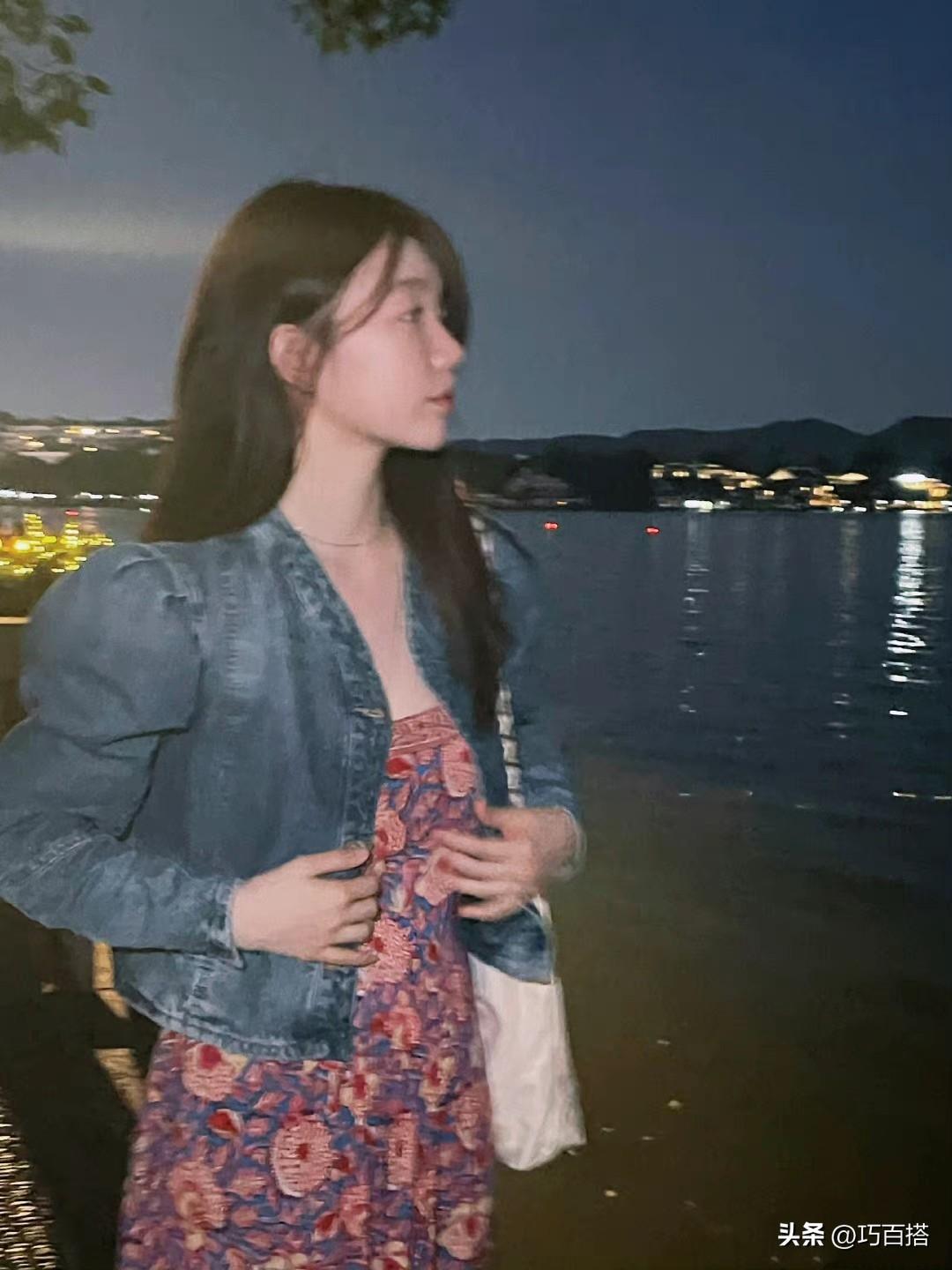 喜歡唯美浪漫的復古風風格的小姐姐,可以照著徐夢這套造型來,高飽和度的亮色系吊帶裙外搭純色且極具現(xiàn)代風格的牛仔外套,個性又有格調。