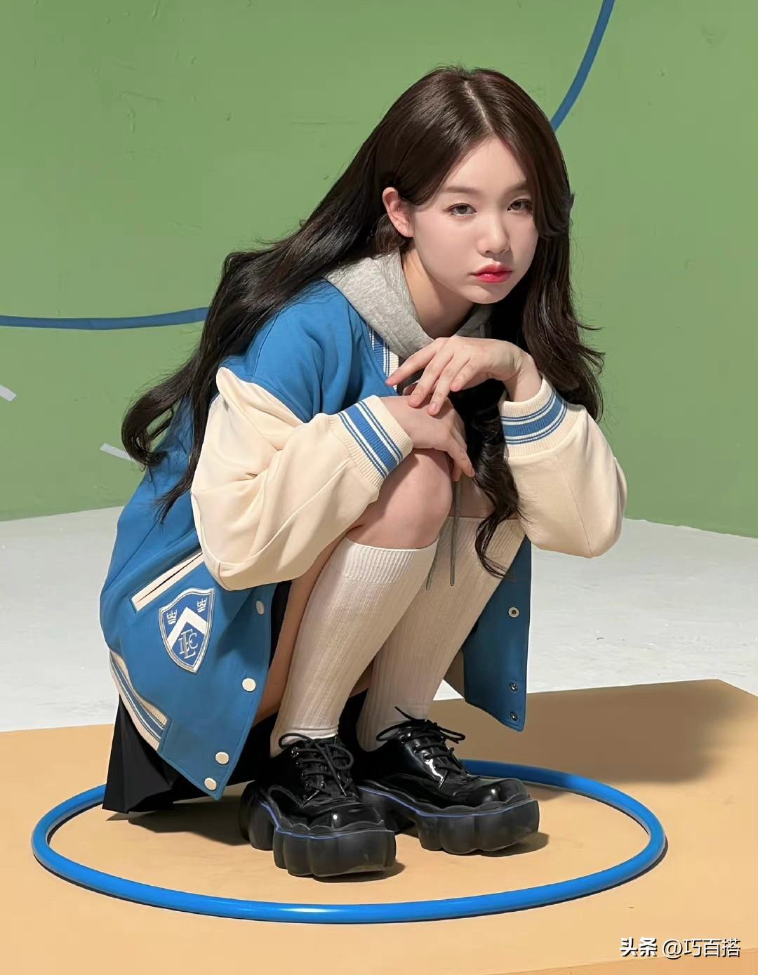 二,春夏天時,可以用它搭配運動短褲,但到了秋冬天,它能配得下裝就只有jk裙、百褶裙和小香風面料的直筒裙了!