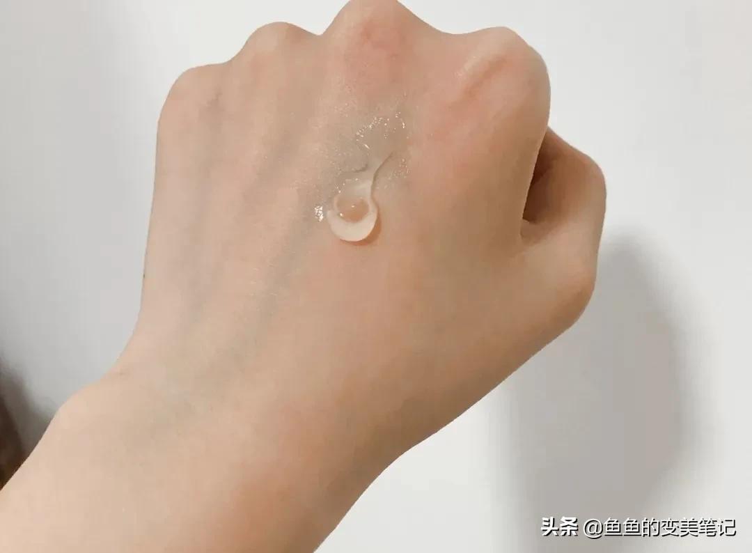 它是輕盈的白色乳液的質(zhì)地,不粘膩不厚重,水水潤潤得輕薄,流動性也很強,上臉無負擔(dān)。