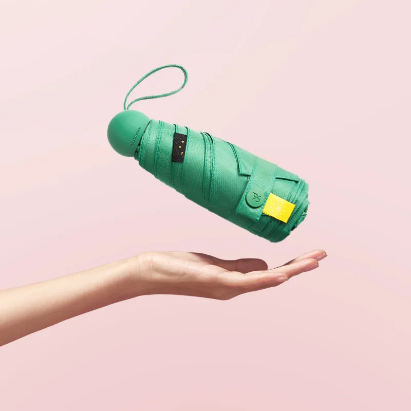 我現(xiàn)在用的蕉下五折防曬傘,重量比iPhone還輕,和手掌一樣長,帶出門塞包里一點都不麻煩。