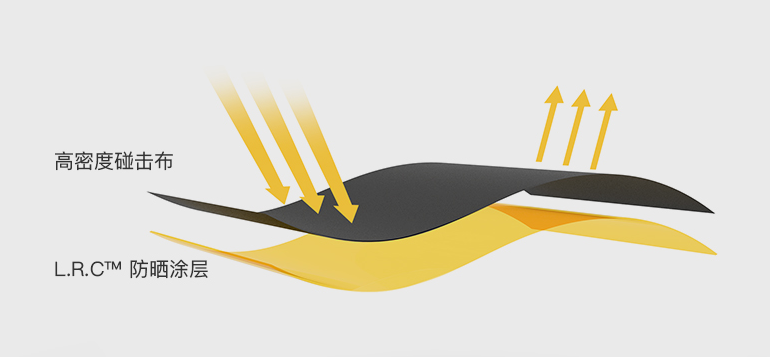 這把傘用的是獨創(chuàng)新型 L.R.C. 高性能防曬涂層。